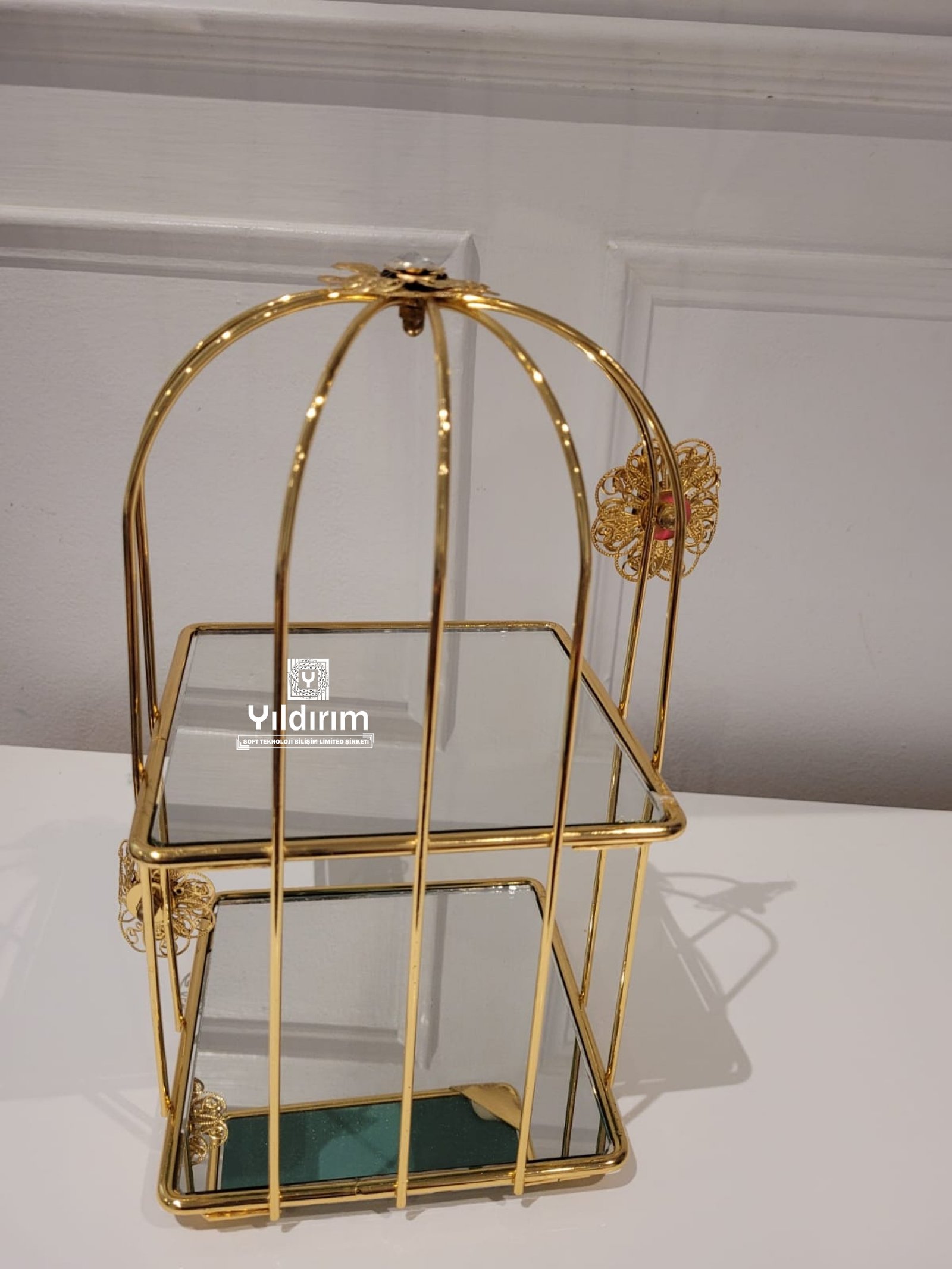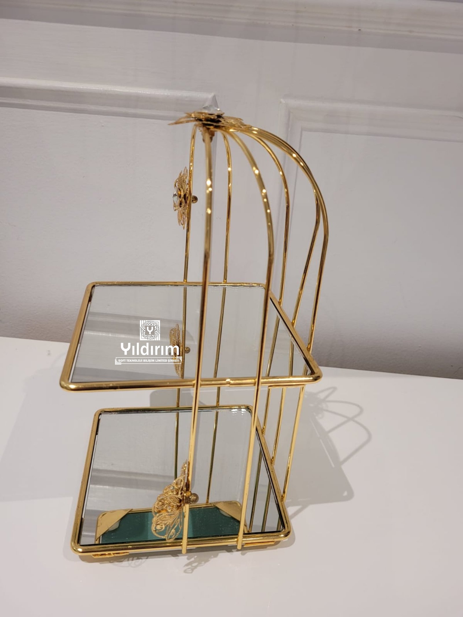 High end cage for cup cake stand glass and metal