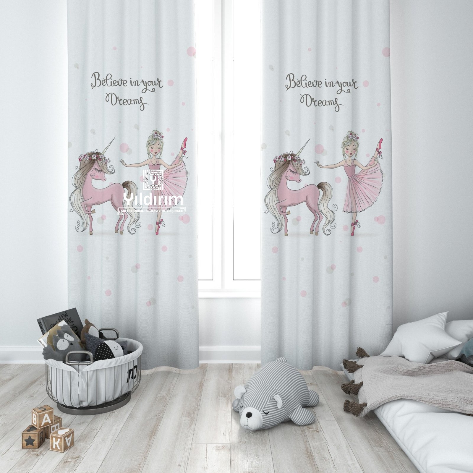 Dimensions: Carpet digital printed size 80x150. Digital printed background curtain 70x260