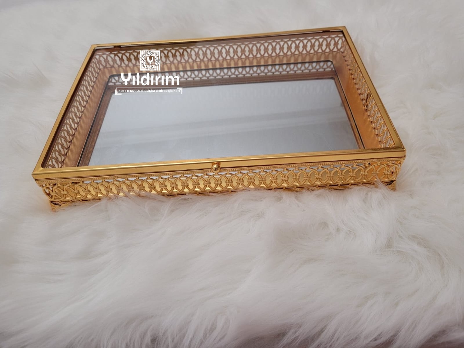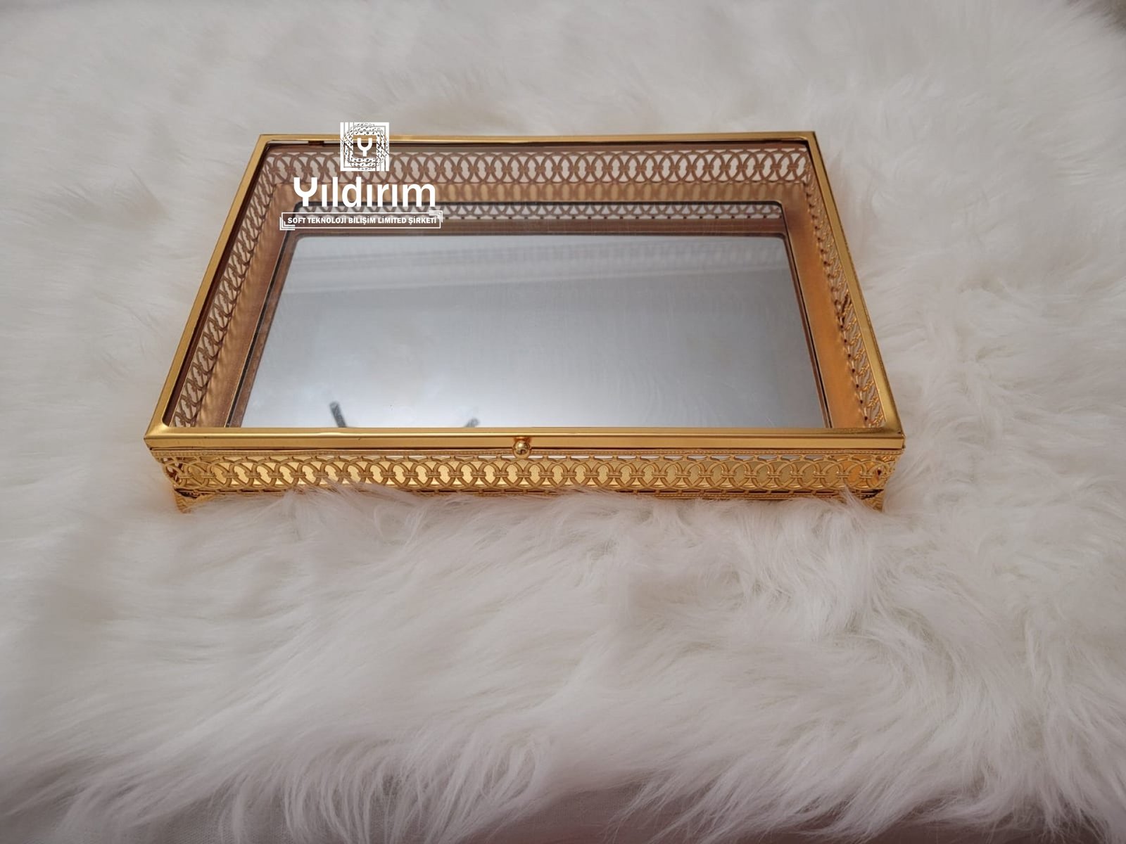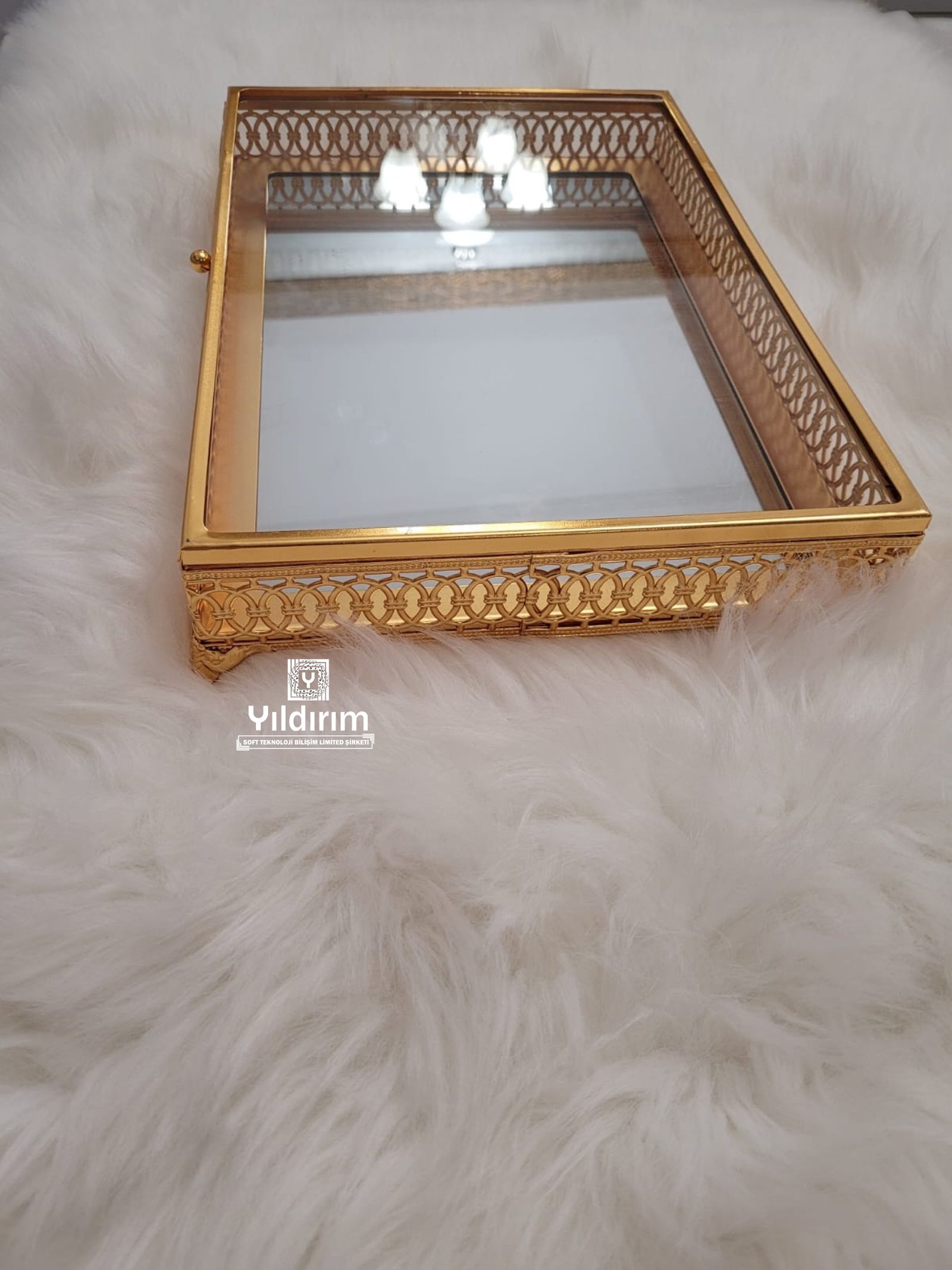 High end rectangular tray with lid mirror glass metal