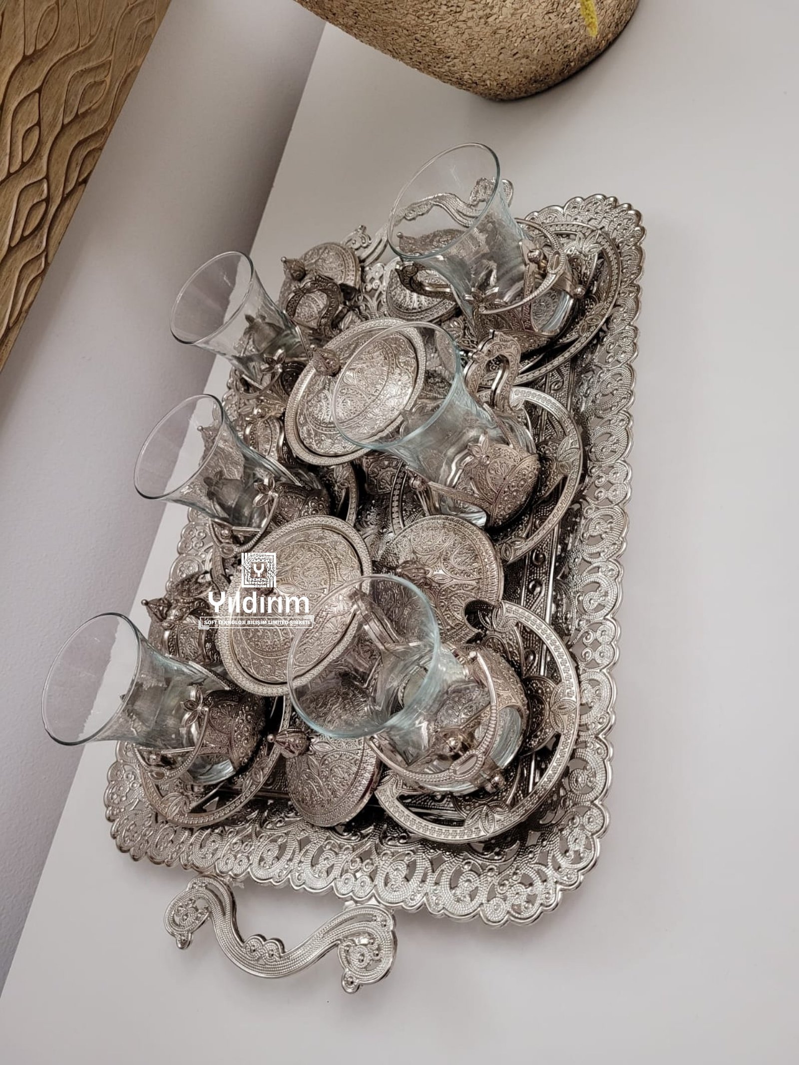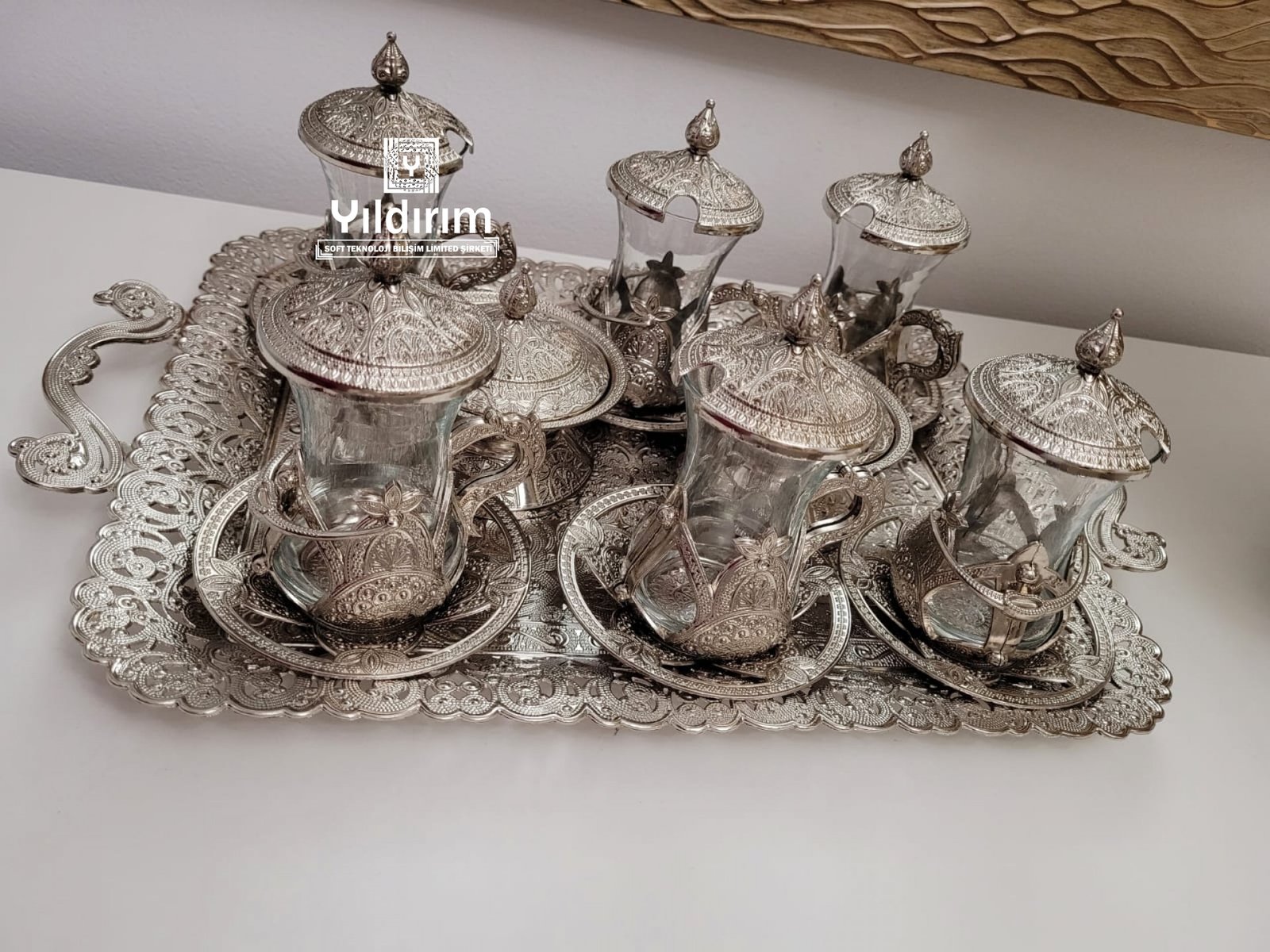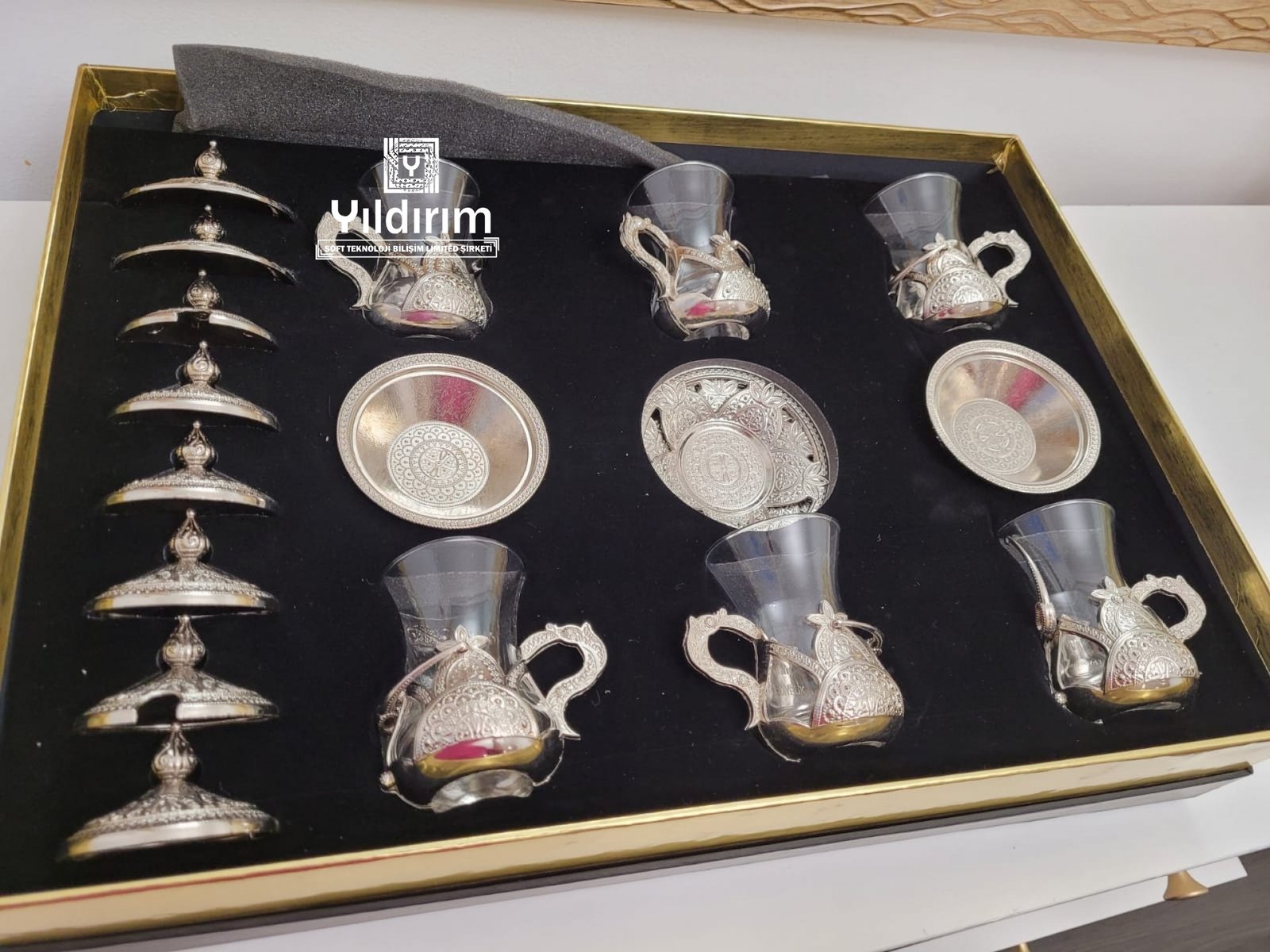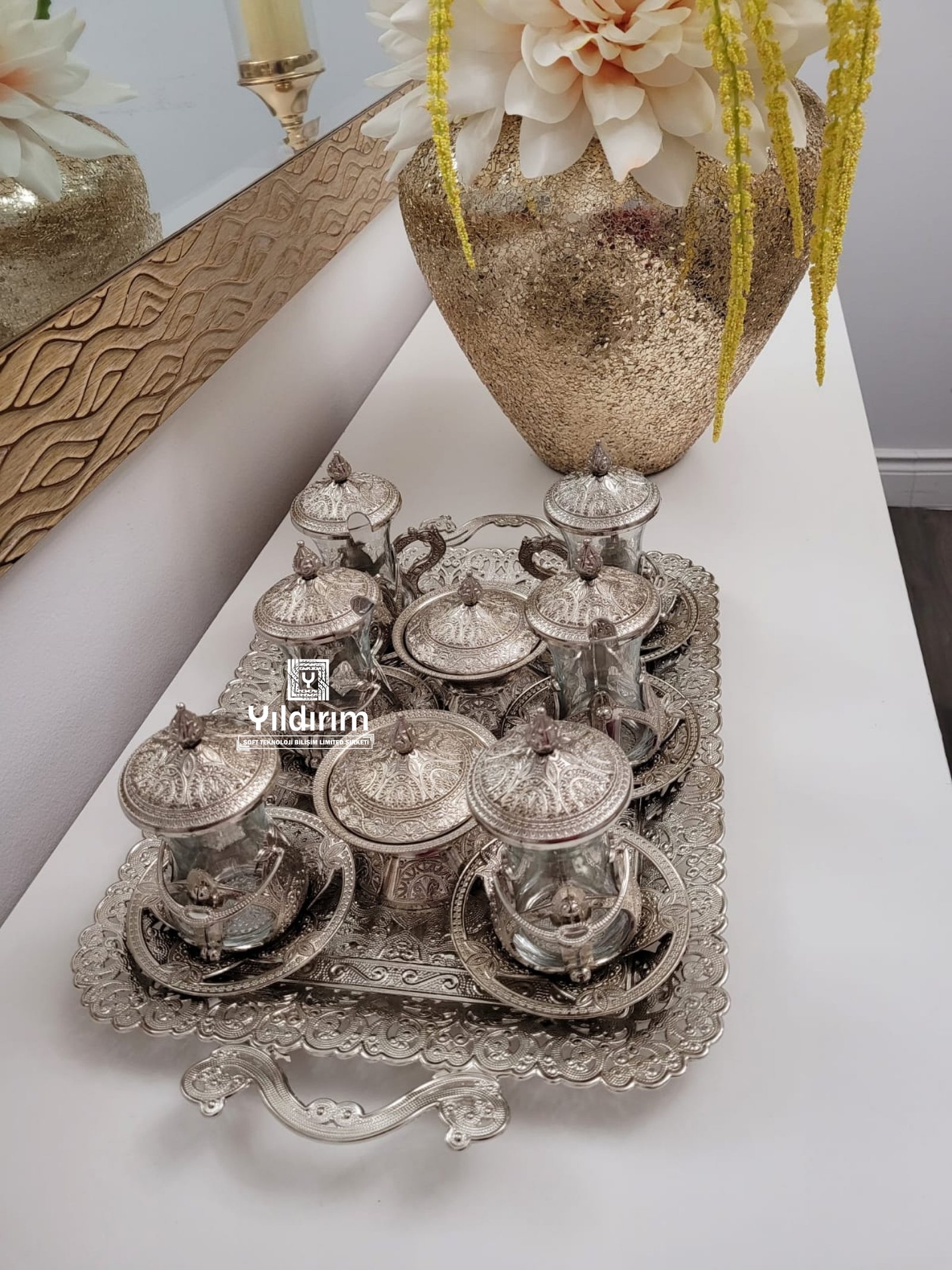 High quality teacup set 6 pcs 38.8x62 cm metal and glass