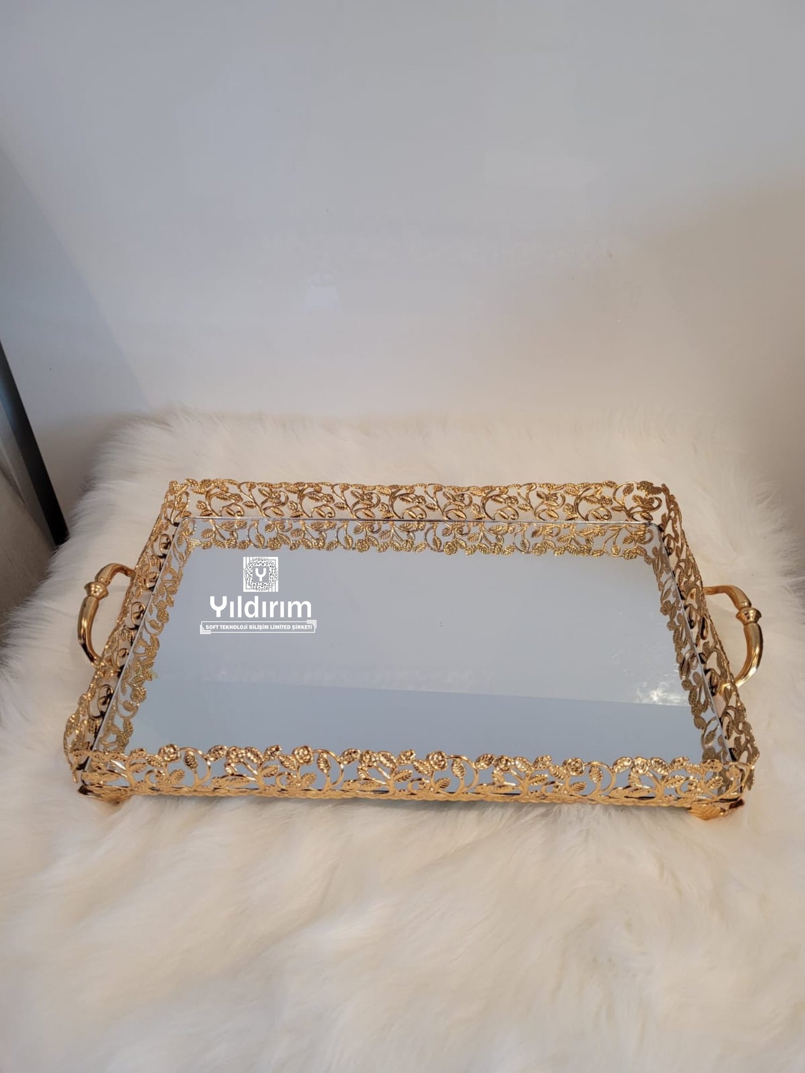 High quality tray rectangular 29x27 CM made from metal and glasses